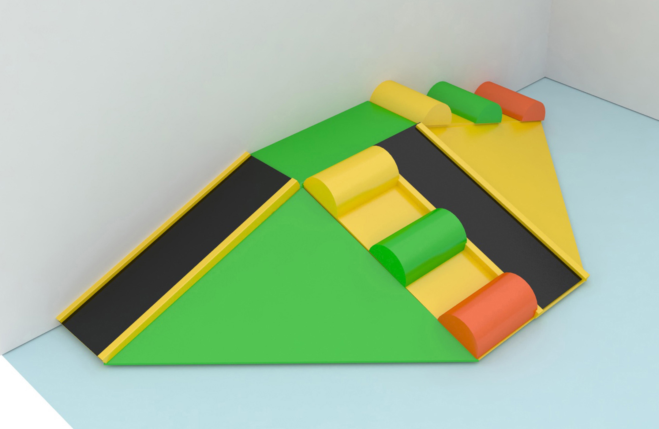 Typically the corners of rooms are not usable playspace but this GoPlay activity turns any non usable corner into a great toddler activity. GoPlay corner crawls make a great addition to any toddler area, large playground, daycare, and autism playroom. This activity includes a small climb, slide and obstacle activity built all into one unit.