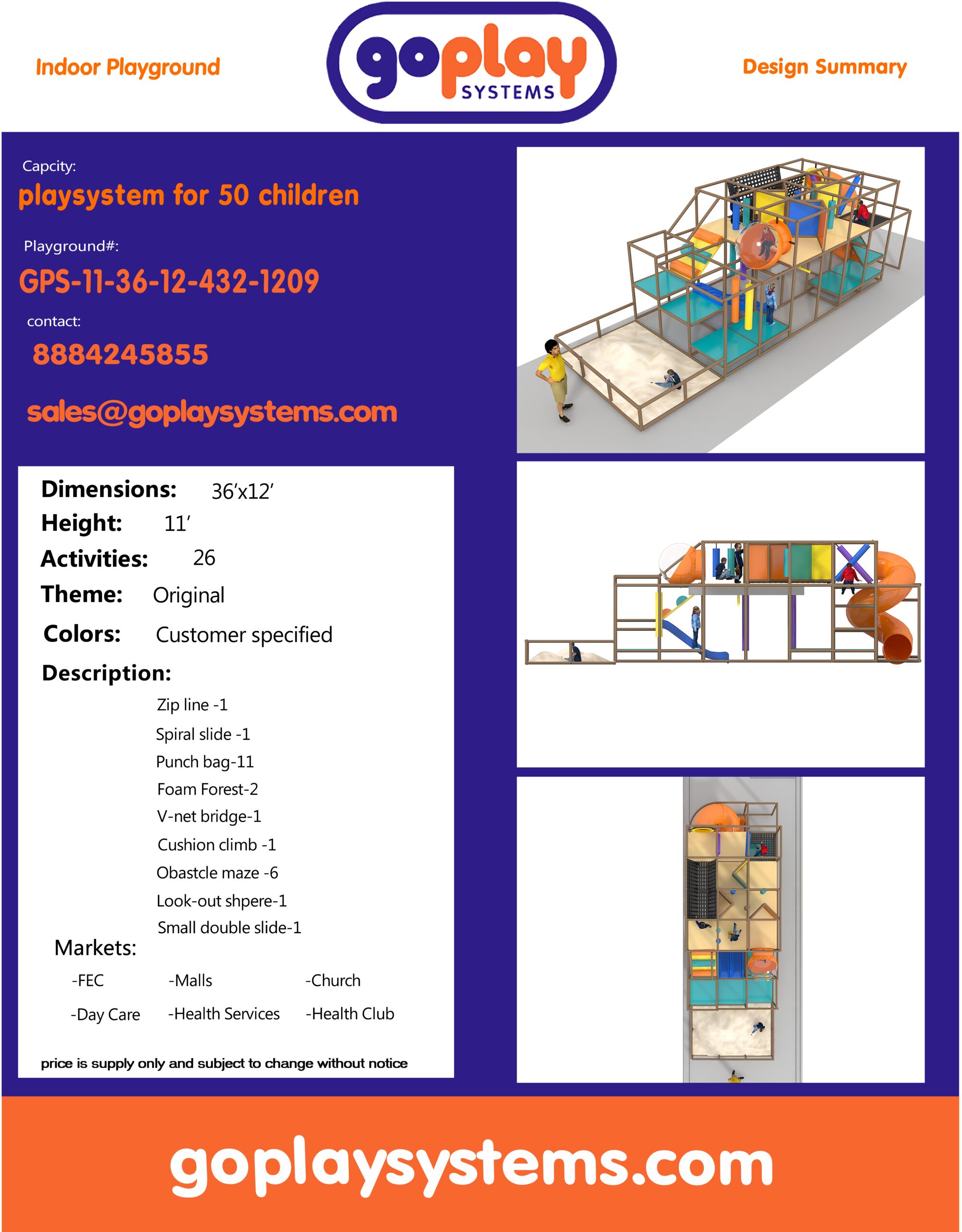 Indoor Playground GPS1209 – 11 ft. H x 36 ft. W x 12 ft.