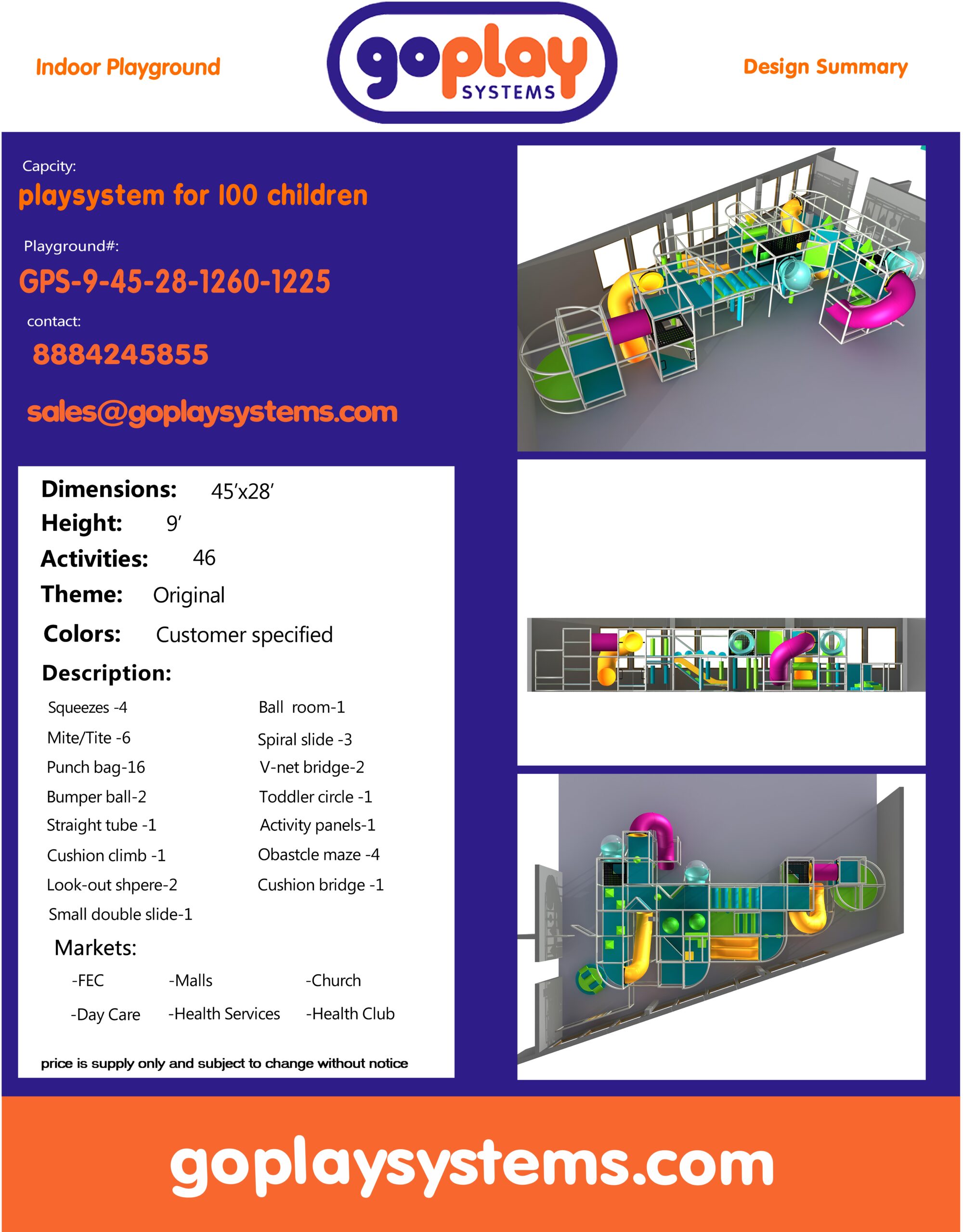 Availability: In-stock Brand: Go Play Systems SKU: gps-9-45-28-1260-1225 Shipping: Free Shipping US to lower 48 states. Shipping Policy Return and Refund Policy *GoPlay sells worldwide. Prices may not include additional shipping and handling charges to your specific location. Contact us for current international shipping rates.