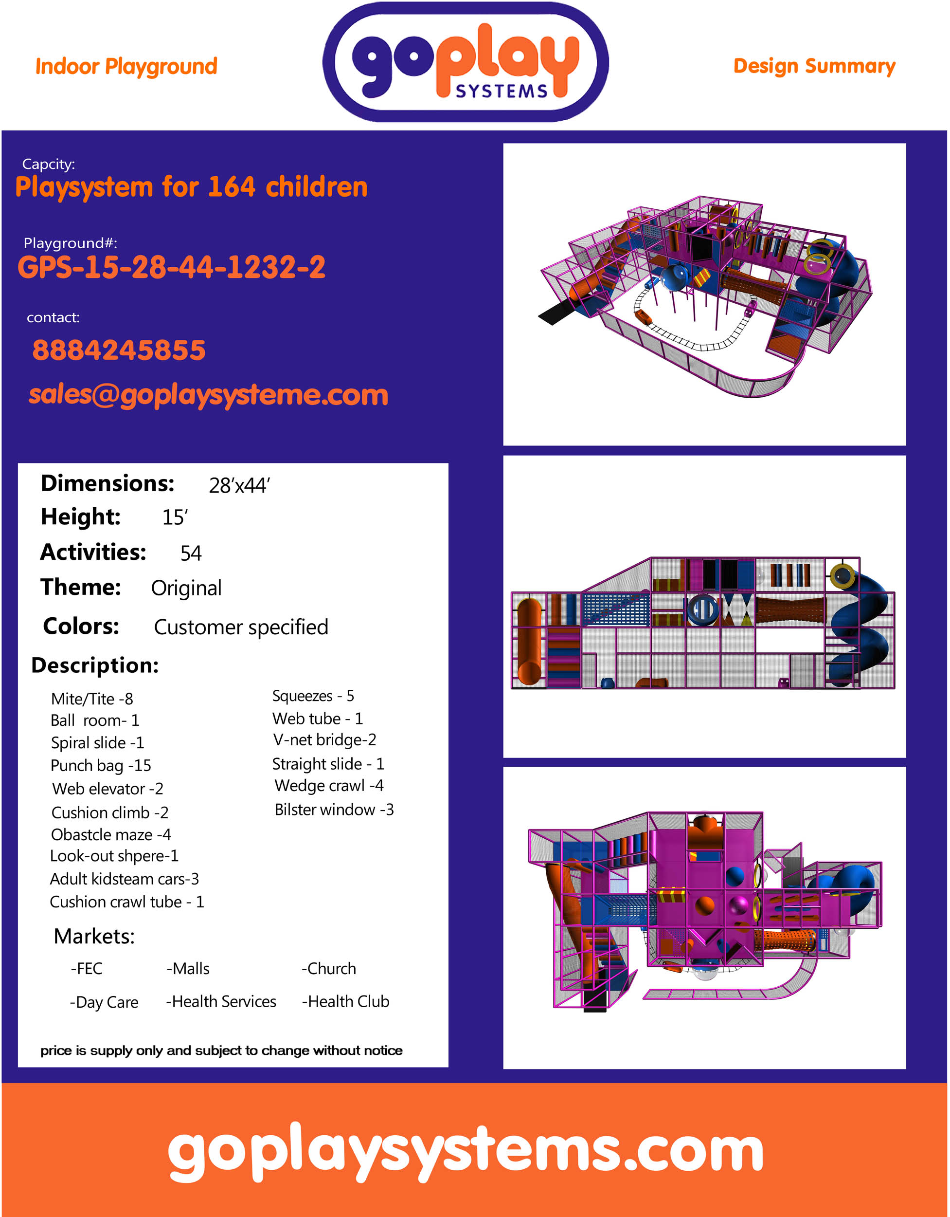 Compre equipo de juegos para interiores GPS2 – (tamaño del sistema de juegos para interiores) 15 pies de alto x 28 pies de ancho x 44 pies.