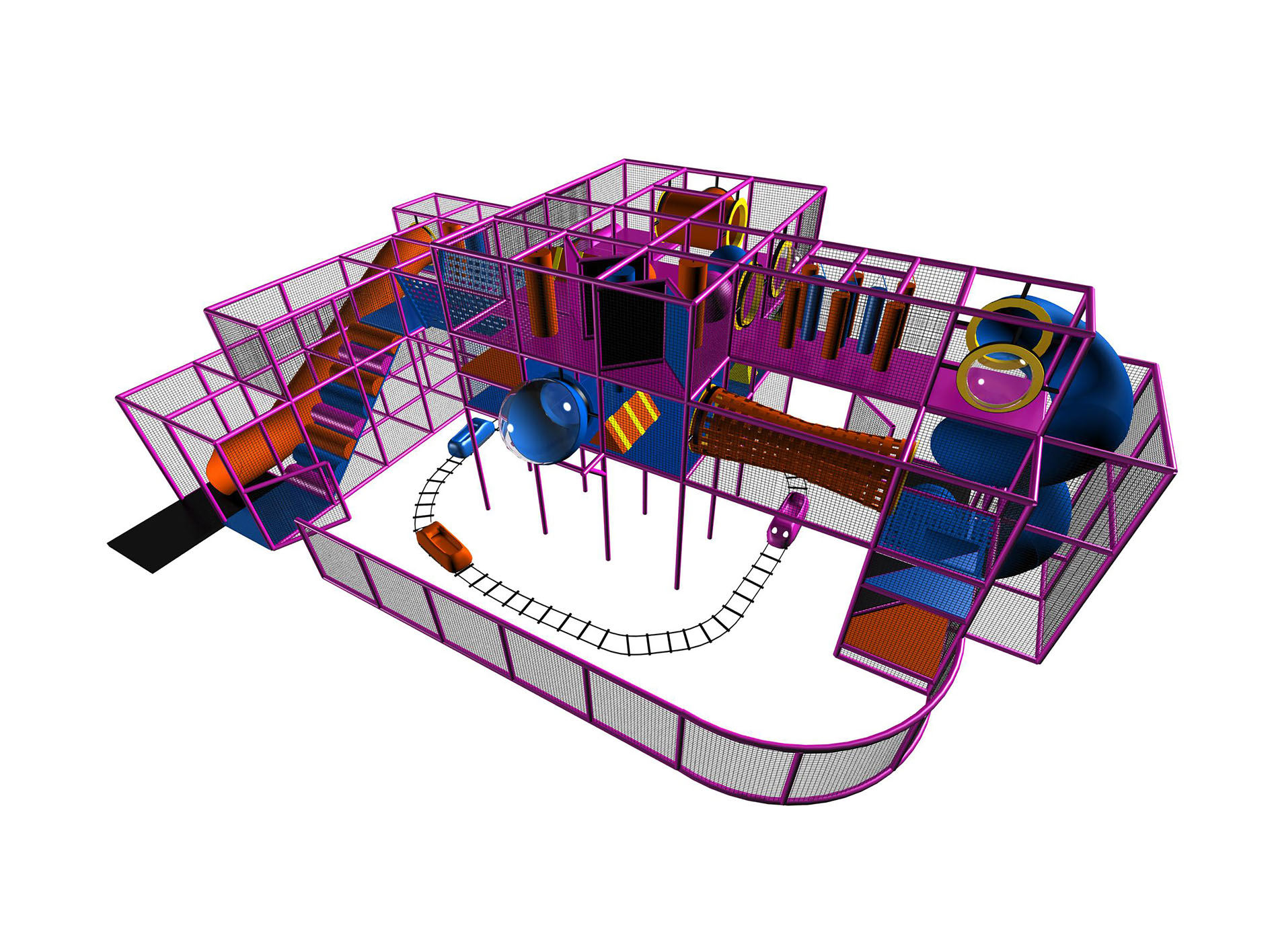 El parque infantil interior GPS2 es un sistema de juego interior a medida para niños de tres a doce años. El área de juego suave mide 8,5 m de ancho por 4,5 m de alto y 13,4 m de largo. El espacio mínimo requerido para este parque infantil interior es de aproximadamente 10,3 m de ancho, con un techo de 5,2 m y 15,2 m de largo. Parque infantil interior de tamaño mediano.