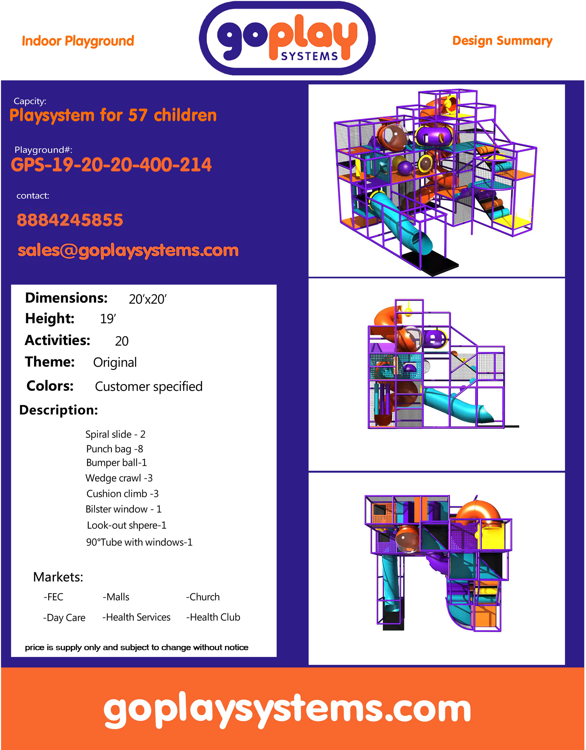 Buy Indoor Playground Equipment GPS214 -(Indoor Playsystem Size) 19 ft. H x 20 ft. W x 20 ft.