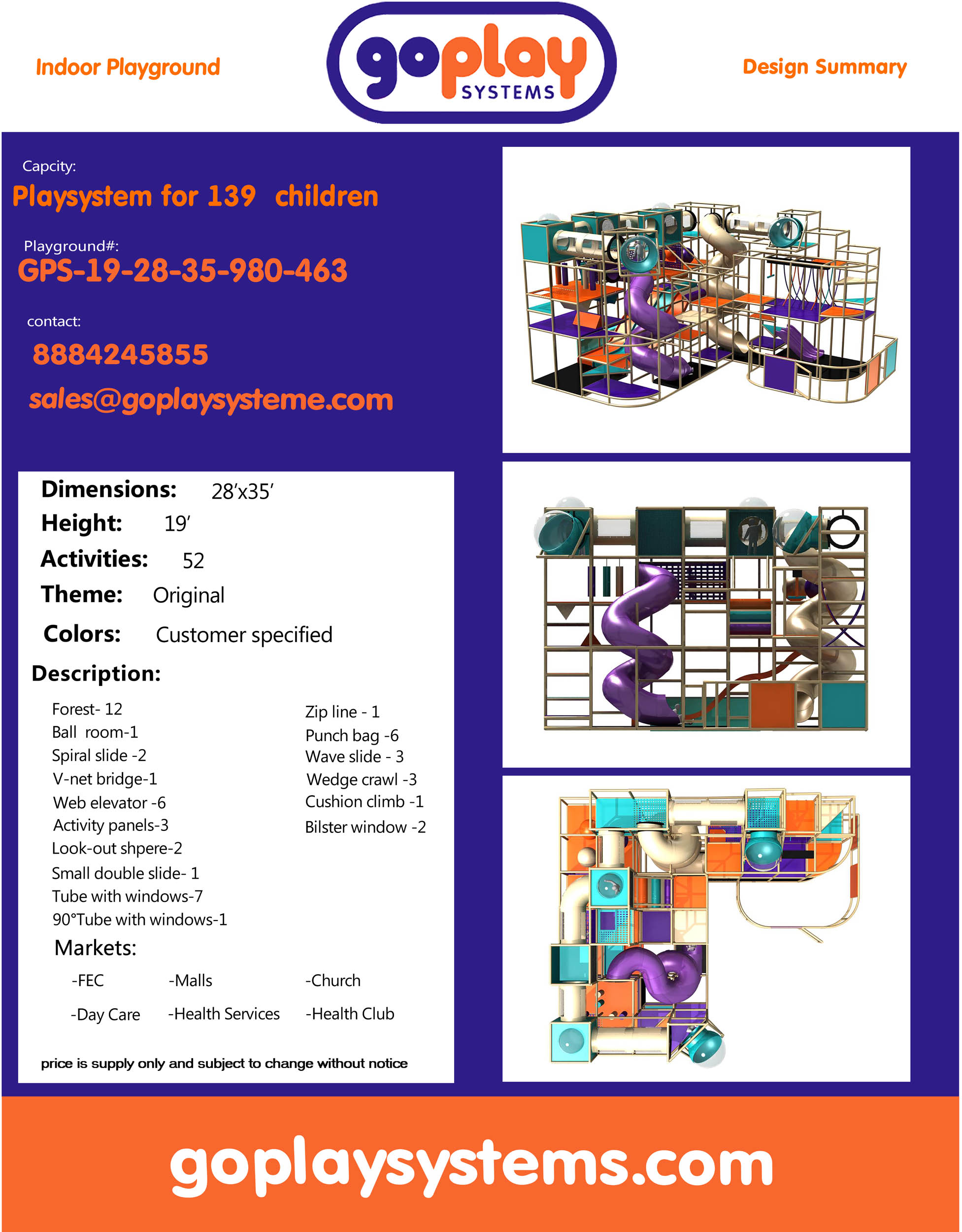 The Indoor Playground GPS463 blends fun, safety, and innovation for children aged 3 to 12. Its spacious, multi-level structure will keep kids engaged with an indoor playground slide and colorful features that spark the imagination. As a medium-sized indoor playground, it fits in many commercial spaces, transforming them into family-friendly destinations. Designed for durability, the GPS463 ensures easy maintenance and long-lasting performance, making it a reliable investment for any business. Buy the Indoor Playground GPS463 and create a joyful and dynamic environment that enhances customer satisfaction and encourages repeat visits, giving your venue a competitive edge.