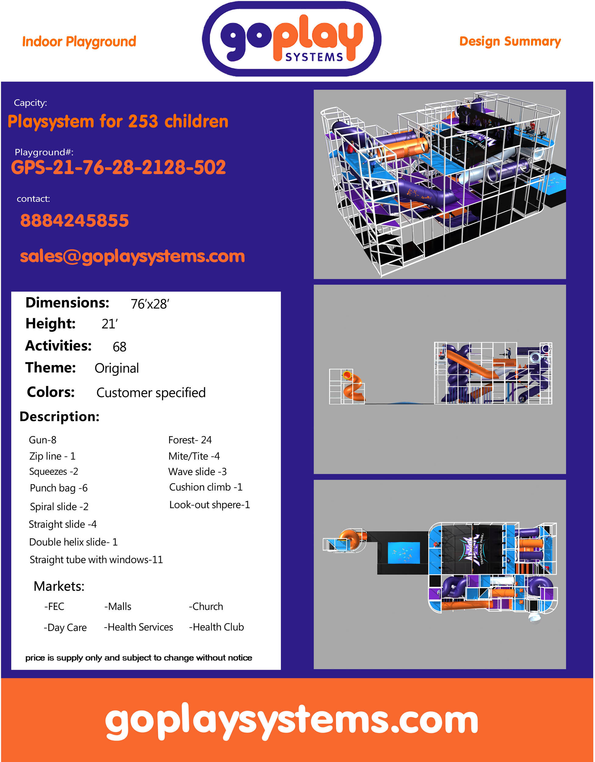 Availability: In-stock Brand: Go Play Systems SKU: GPS-21-76-28-2128-502 Shipping: Free Shipping US to lower 48 states. Shipping Policy Return and Refund Policy *GoPlay sells worldwide. Prices may not include additional shipping and handling charges to your specific location. Contact us for current international shipping rates.