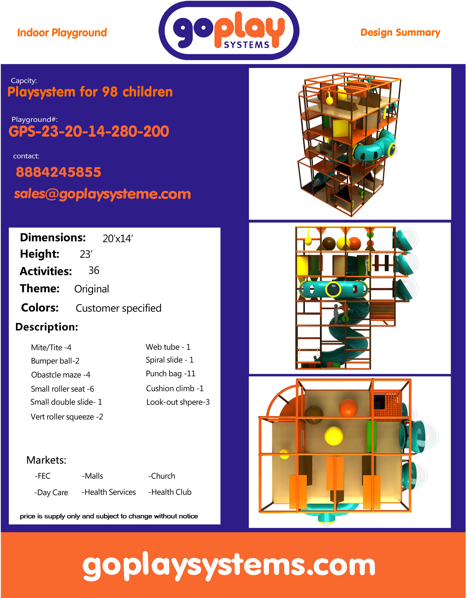 Buy Indoor Playground Equipment GPS200 -(Indoor Playsystem Size) 23 ft. H x 20 ft. W x 14 ft.
