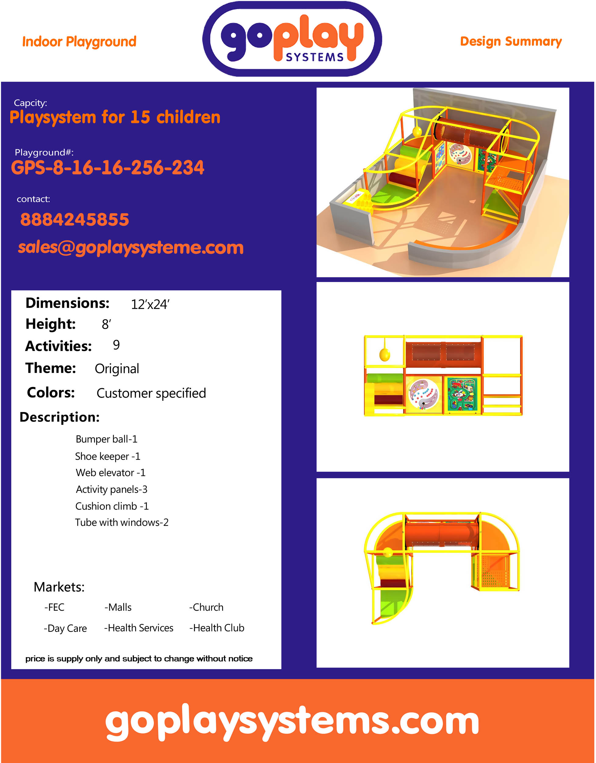 Buy Indoor Playground Equipment GPS234 -(Indoor Playsystem Size) 8 ft. H x 16 ft. W x 16 ft.