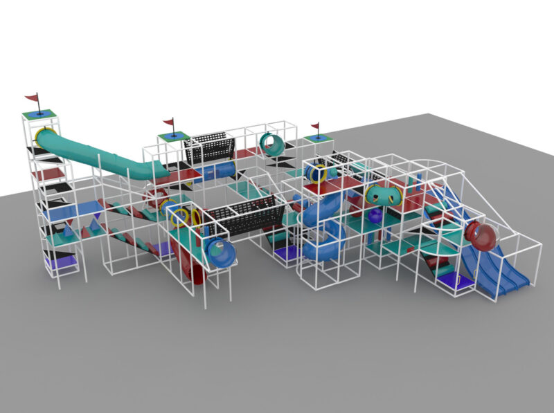 Indoor Playground GPS1006 is a custom designed module soft play system. The playground system measures 25 ft. H x 60 ft. W x 44 ft.