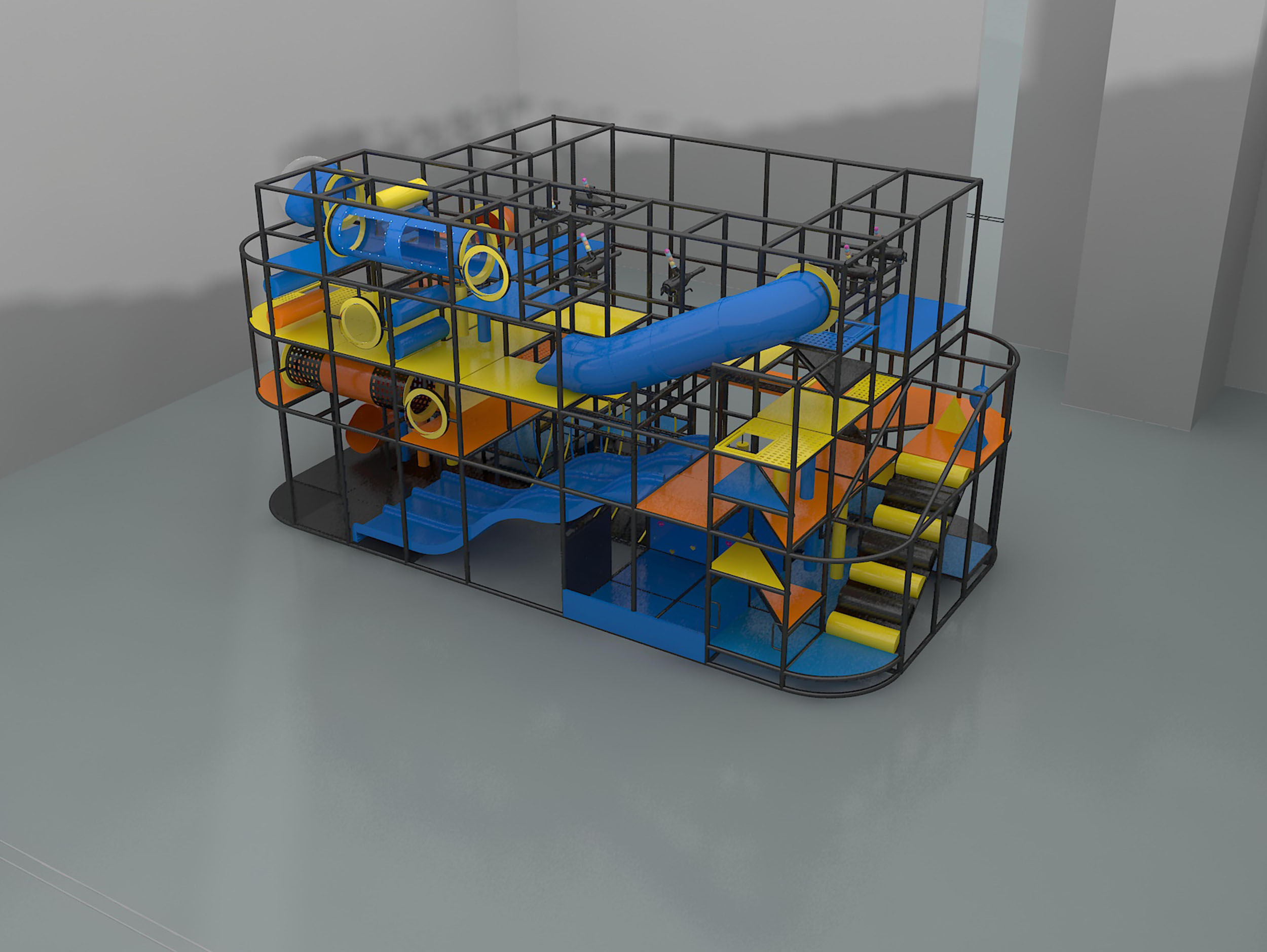 Indoor Playground GPS1022 is a custom designed modular soft play system developed to safely accommodate children. The playground system measures 38 ft. wide by 19 ft. high and a length of 20 ft. The minimum indoor room space required for this playground is approximately 44 ft. room width with a 21 ft. ceiling and 26 ft. room length. Large Size Indoor Playground. This playground is suitable to fit in a building or warehouse with a high ceiling.