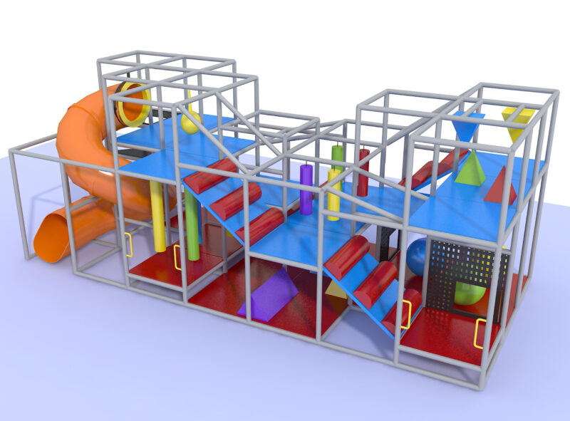 Indoor Playground GPS1025 is a custom designed module soft play system. The playground system measures 11 ft. H x 28 ft. W x 12 ft.
