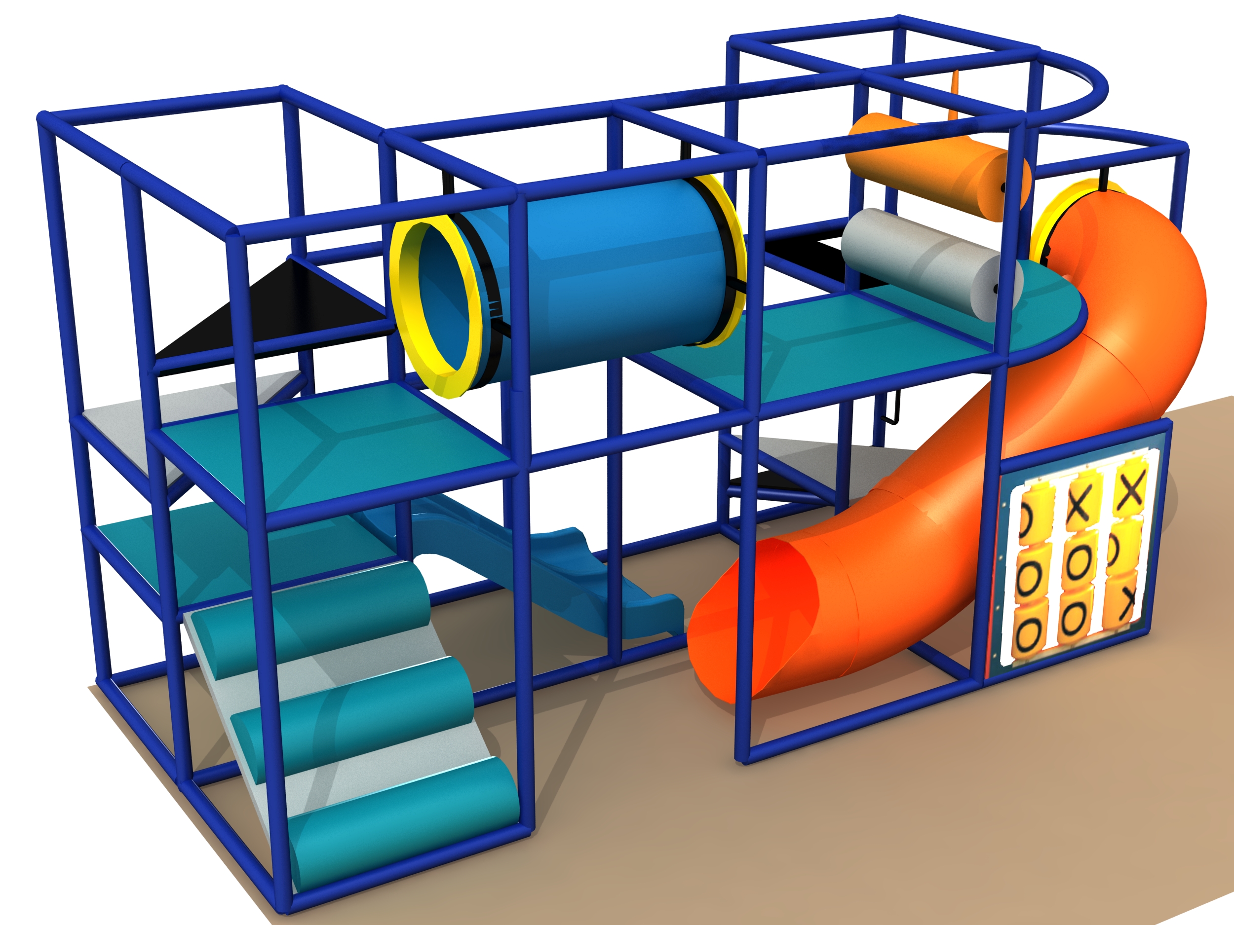 Indoor Playground GPS1222 is a custom indoor playsystem for children three to twelve years of age. The softplay unit measures 8 ft. wide by 10 ft. high and a length of 21 ft. The minimum room space required for this children’s play equipment is approximately 14 ft. room width with a 12 ft. ceiling and 27 ft. room length. Total area: 168 sq ft. Medium Size Indoor Playground.