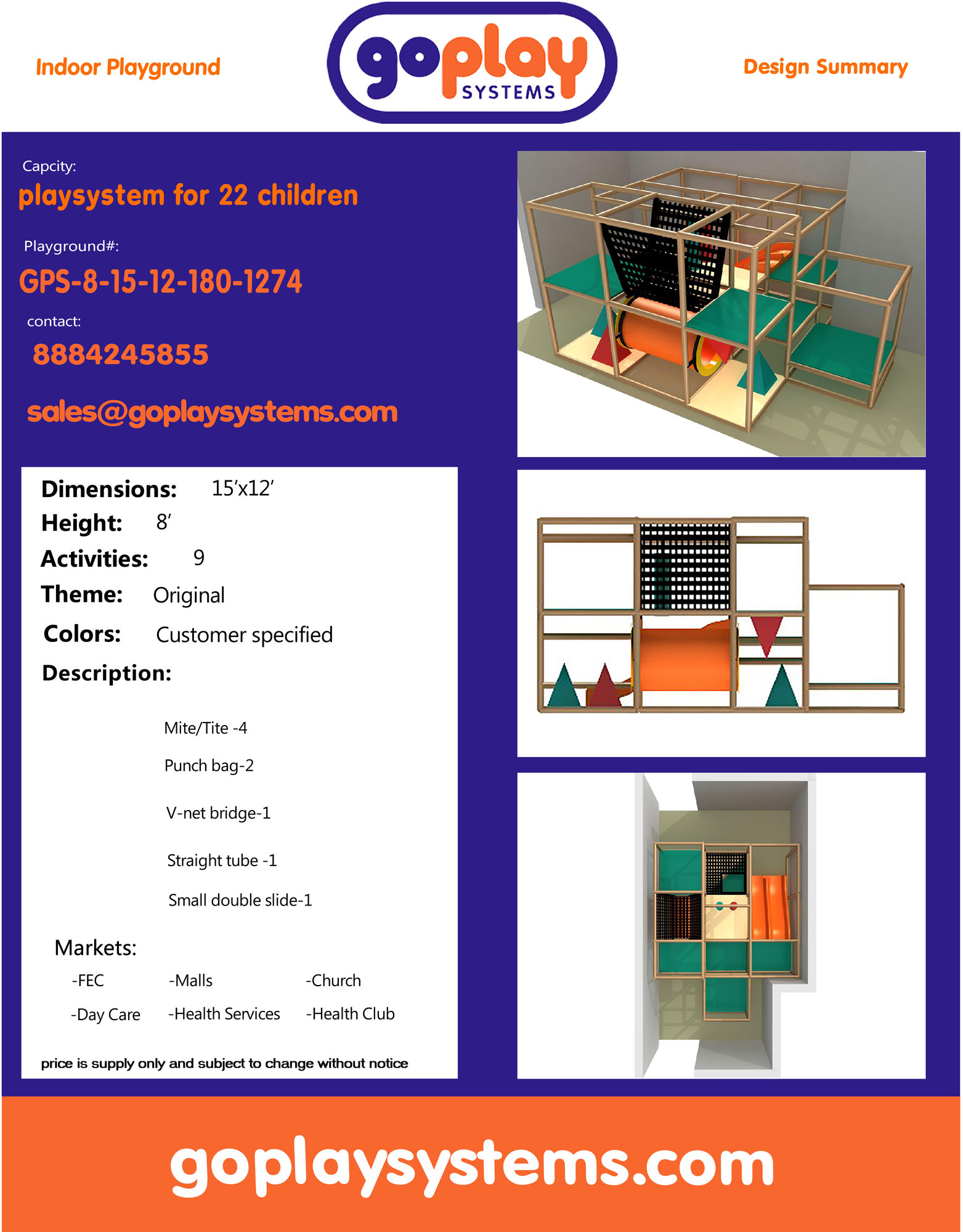 Availability: In-stock Brand: Go Play Systems SKU: GPS-8-15-12-180-1274 Shipping: Free Shipping US to lower 48 states. Shipping Policy Return and Refund Policy *GoPlay sells worldwide. Prices may not include additional shipping and handling charges to your specific location. Contact us for current international shipping rates.