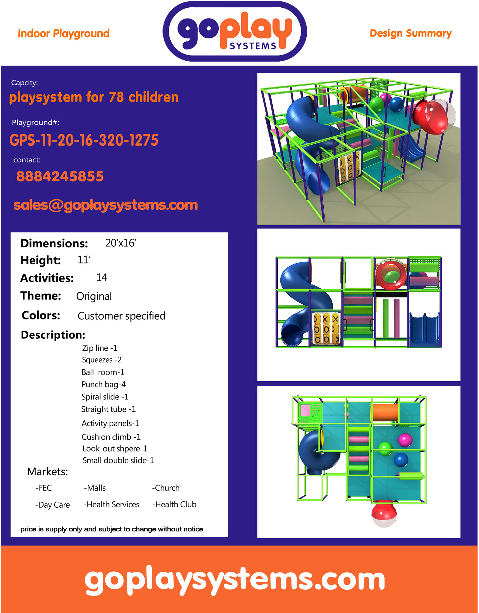 Availability: In-stock Brand: Go Play Systems SKU: GPS-11-20-16-320-1275 Shipping: Free Shipping US to lower 48 states. Shipping Policy Return and Refund Policy *GoPlay sells worldwide. Prices may not include additional shipping and handling charges to your specific location. Contact us for current international shipping rates.