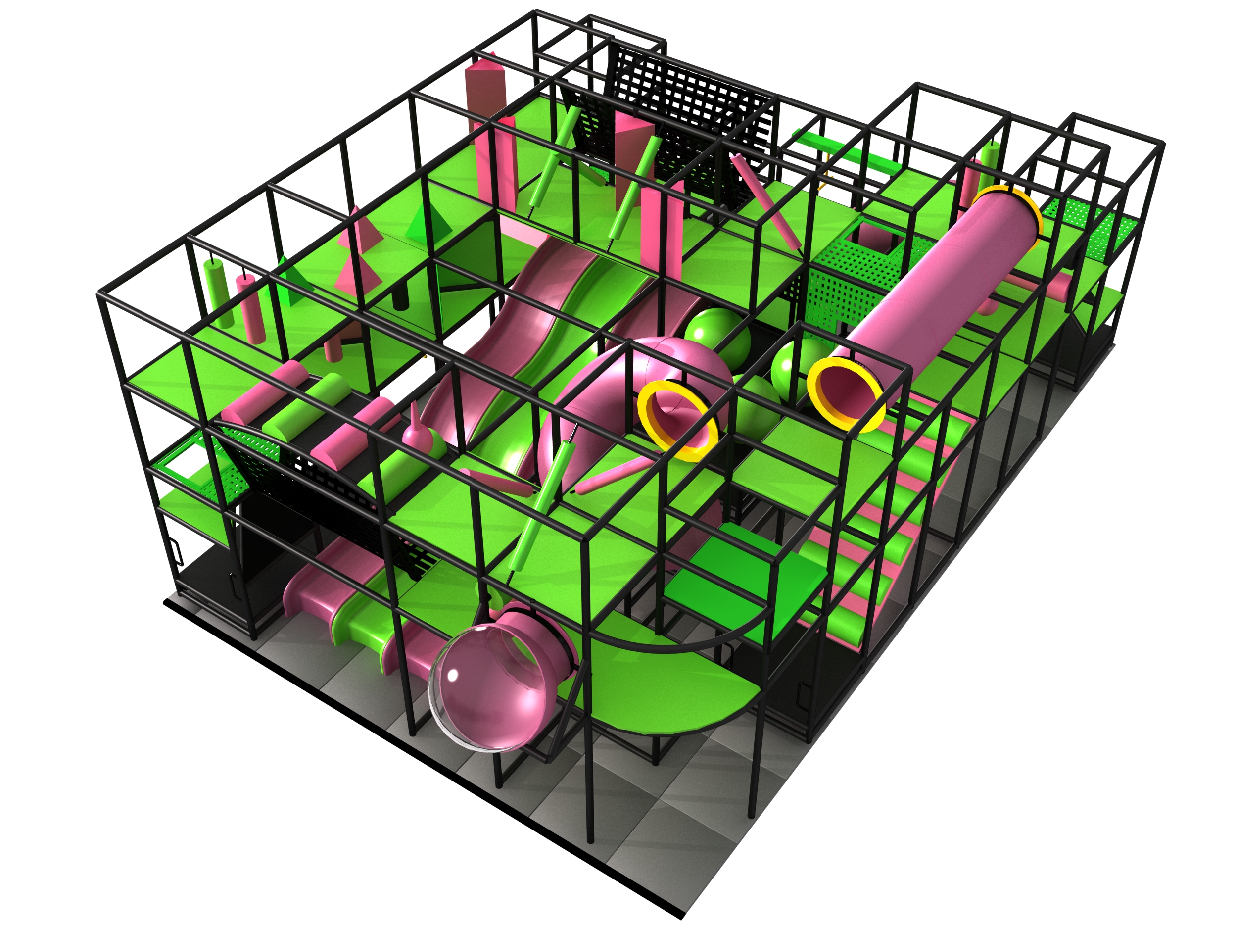 Indoor Playground GPS1326 is a custom indoor playsystem for children three to twelve years of age. The softplay unit measures 24 ft. wide by 15 ft. high and a length of 36 ft. The minimum room space required for this children’s play equipment is approximately 30 ft. room width with a 17 ft. ceiling and 42 ft. room length. Total area: 864 sq ft. Medium-Large Size Indoor Playground.