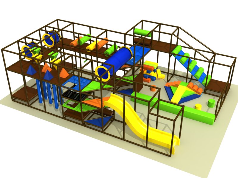 Indoor Playground GPS1338 is a custom indoor playsystem for children three to twelve years of age. The softplay unit measures 24 ft. wide by 11 ft. high and a length of 36 ft. The minimum room space required for this children’s play equipment is approximately 30 ft. room width with a 13 ft. ceiling and 42 ft. room length. Total area: 864 sq ft. Medium Size Indoor Playground.