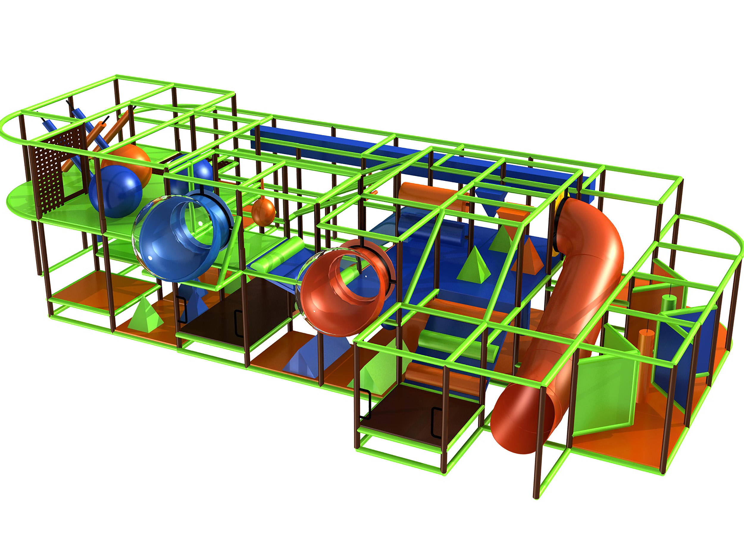 Indoor Playground GPS145 is a custom designed modular soft play system developed to safely accommodate children. The playground system measures 20 ft. wide by 9 ft. high and a length of 36 ft. The minimum indoor room space required for this playground is approximately 26 ft. room width with a 11 ft. ceiling and 42 ft. room length. Medium Size Indoor Playground.