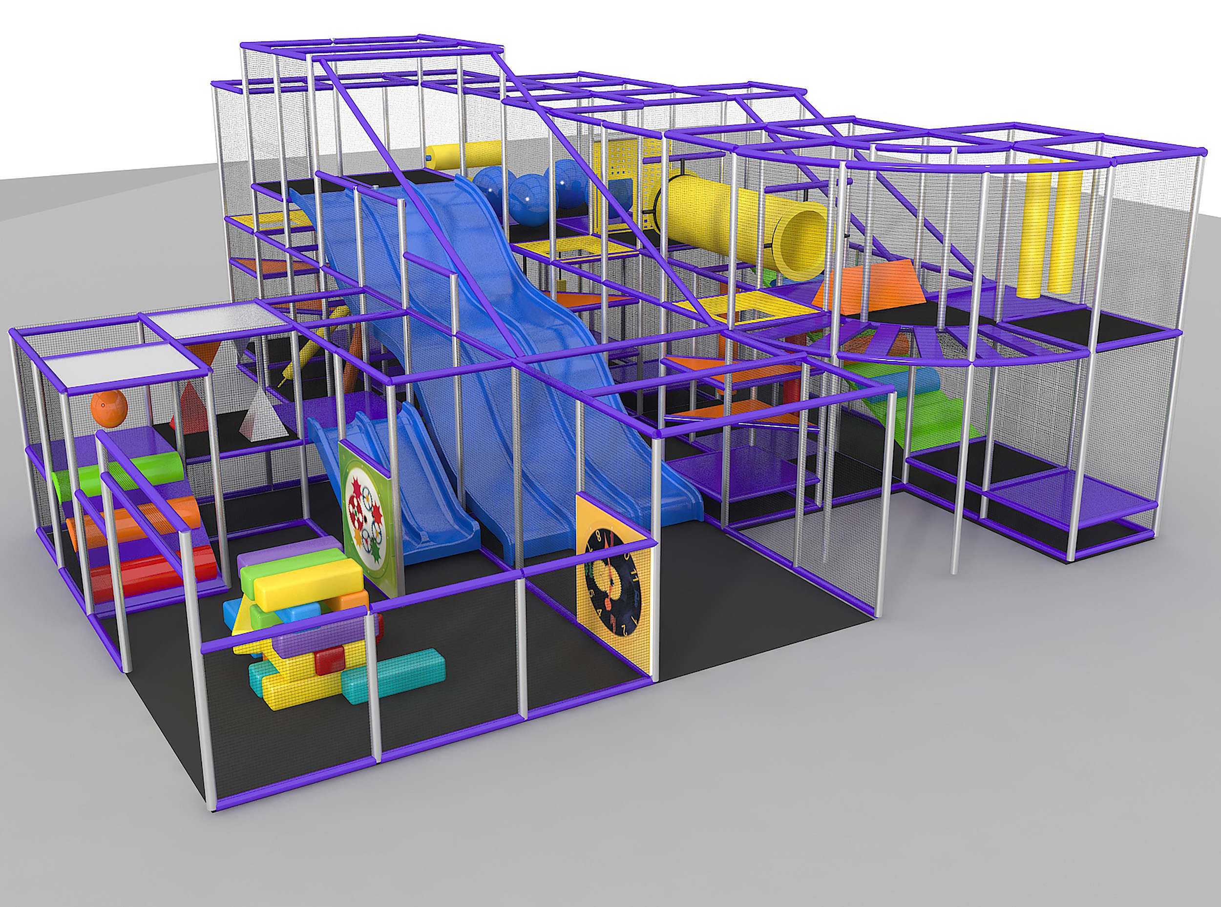 Indoor Playground GPS146 is a custom designed modular soft play system developed to safely accommodate children. The playground system measures 36 ft. wide by 15 ft. high and a length of 32 ft. The minimum indoor room space required for this playground is approximately 42 ft. room width with a 17 ft. ceiling and 38 ft. room length. Medium Size Indoor Playground.