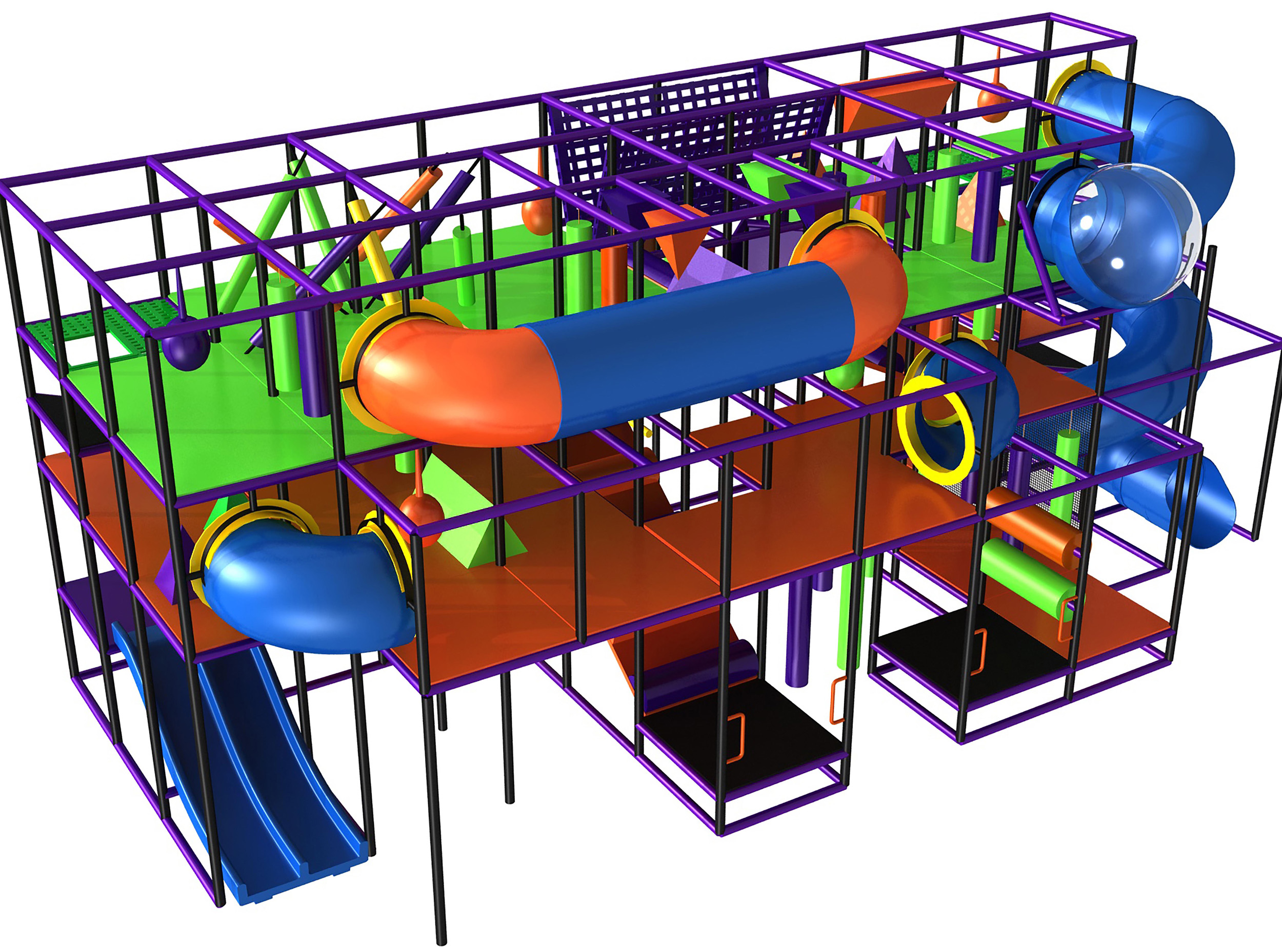Indoor Playground GPS149 is a custom designed modular soft play system developed to safely accommodate children. The playground system measures 16 ft. wide by 15 ft. high and a length of 36 ft. The minimum indoor room space required for this playground is approximately 22 ft. room width with a 17 ft. ceiling and 42 ft. room length. Medium Size Indoor Playground.