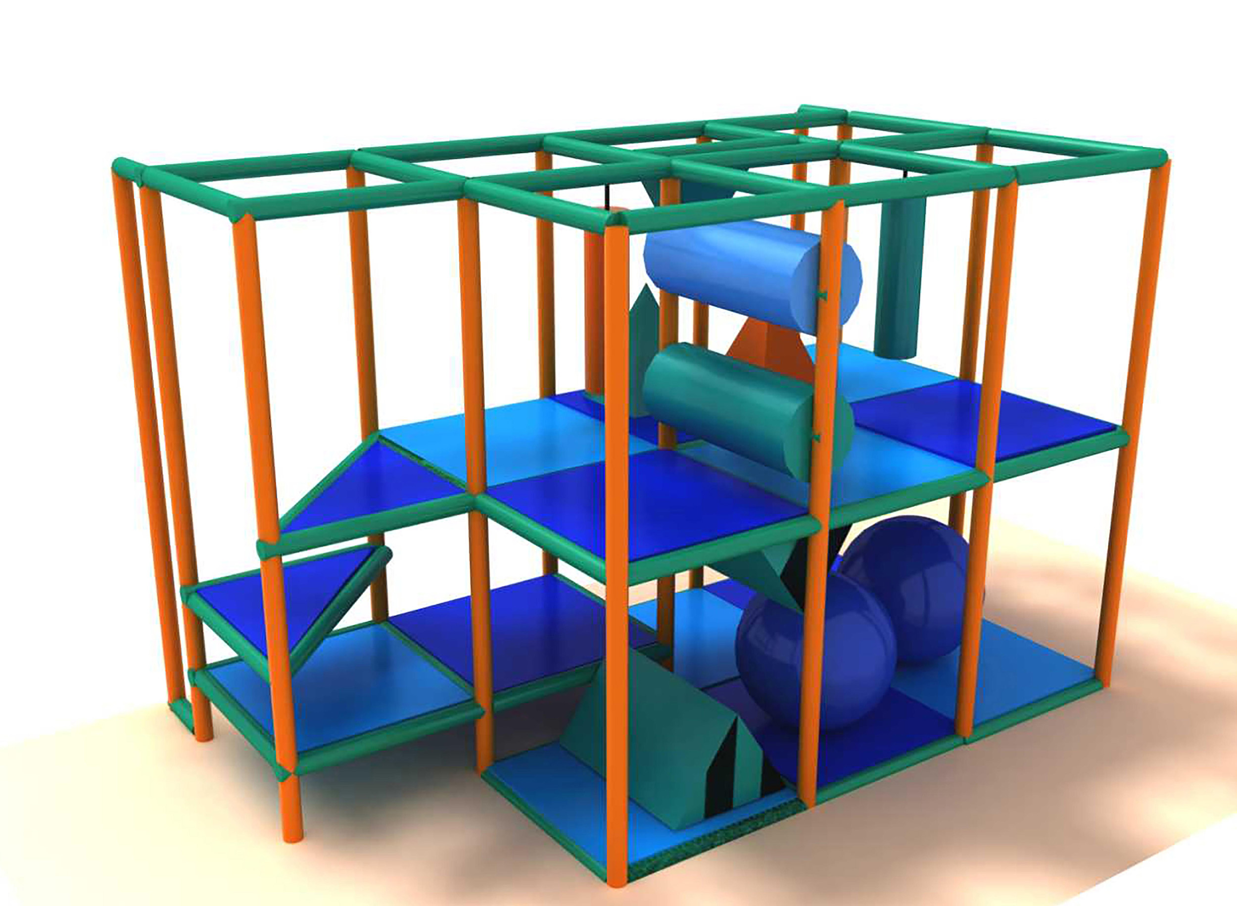 Indoor Playground GPS154 is a custom designed modular soft play system developed to safely accommodate children. The playground system measures 12 ft. wide by 8 ft. high and a length of 6 ft. The minimum indoor room space required for this playground is approximately 18 ft. room width with a 10 ft. ceiling and 12 ft. room length. Medium Size Indoor Playground.