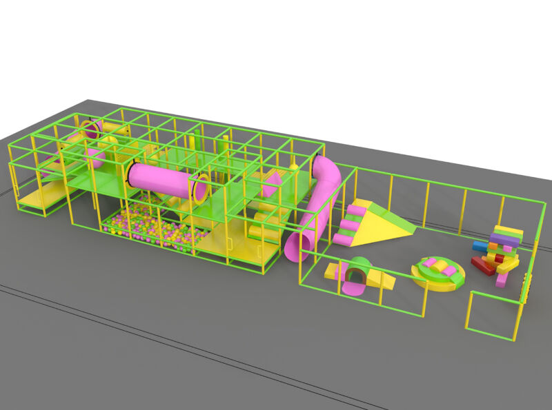 Indoor Playground GPS175 is a custom designed modular soft play system developed to safely accommodate children. The playground system measures 60 ft. wide by 9 ft. high and a length of 16 ft. The minimum indoor room space required for this playground is approximately 66 ft. room width with a 11 ft. ceiling and 22 ft. room length. Medium Size Indoor Playground.