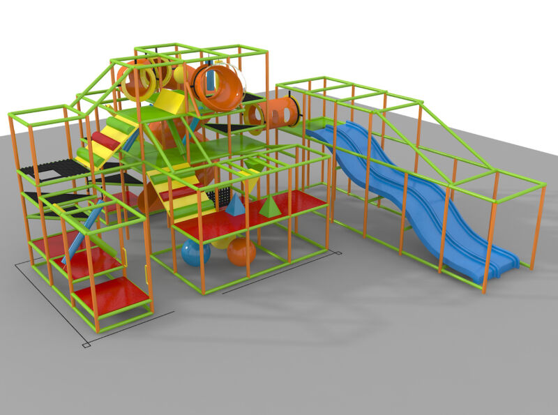 El parque infantil interior GPS178 es un sistema de juego blando modular diseñado a medida para niños de forma segura. El sistema mide 9 metros de ancho por 4,5 metros de alto y 9,7 metros de largo. El espacio interior mínimo requerido para este parque infantil es de aproximadamente 11 metros de ancho, con un techo de 5,2 metros y 11,5 metros de largo. Parque infantil interior de tamaño mediano.