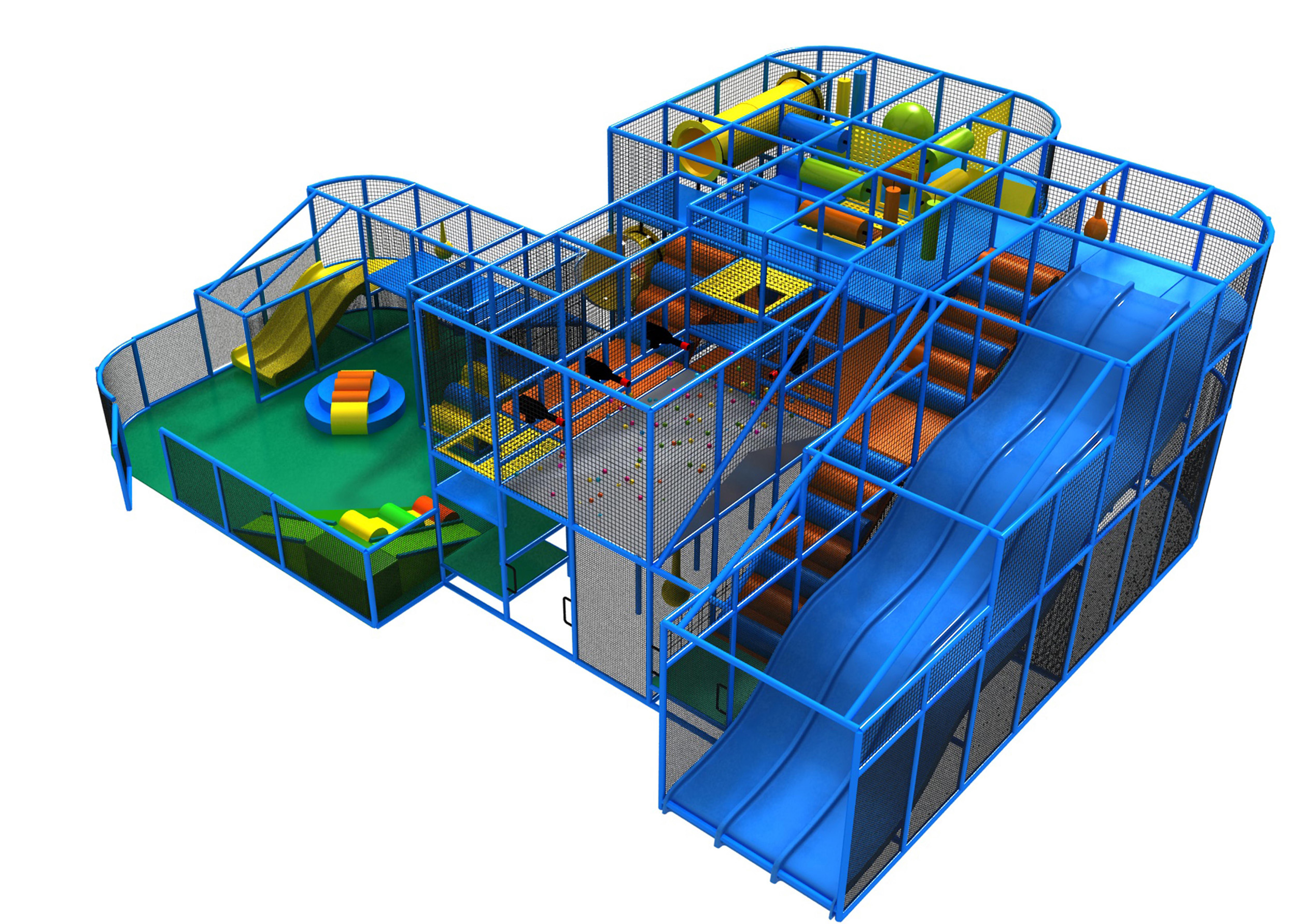 Indoor Playground GPS818 is a custom designed modular soft play system developed to safely accommodate children. The playground system measures 36 ft. wide by 15 ft. high and a length of 46 ft. The minimum indoor room space required for this playground is approximately 42 ft. room width with a 17 ft. ceiling and 52 ft. room length. Medium Size Indoor Playground.