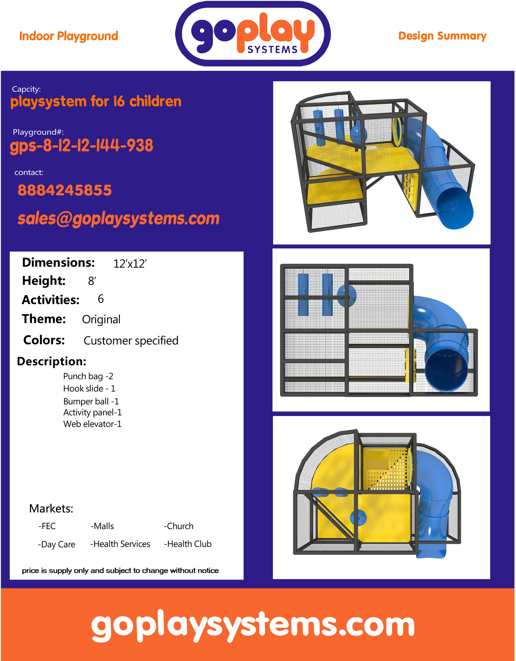 Availability: In-stock Brand: Go Play Systems SKU: GPS-8-12-12-144-938 Shipping: Free Shipping US to lower 48 states. Shipping Policy Return and Refund Policy *GoPlay sells worldwide. Prices may not include additional shipping and handling charges to your specific location. Contact us for current international shipping rates.